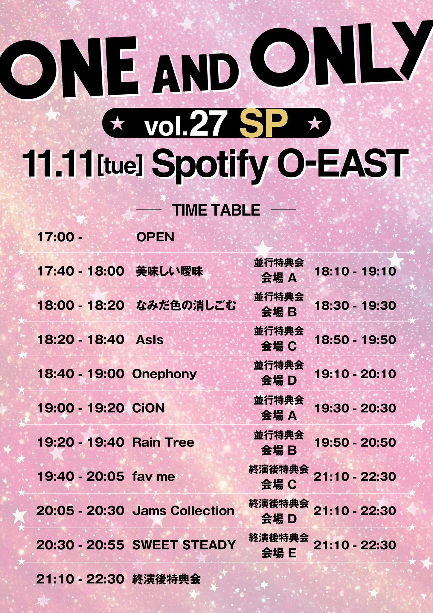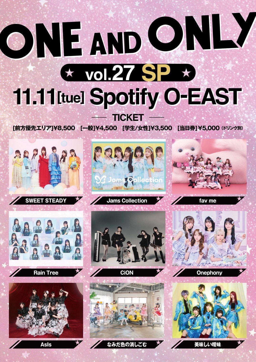 【ライブ情報✨】🗓️11月11日(火)『ONE AND ONLY SP Vol.27』📍 Spotify O-EAST🕰️ 開場17:00/開演 17:40🎤19:40~20:05📷21:10~22:30(会場C)